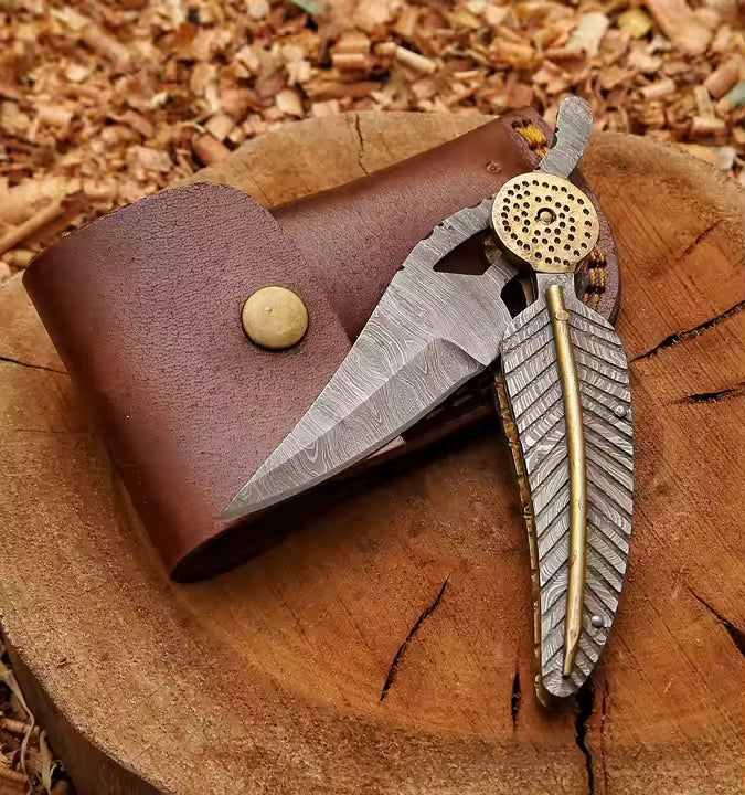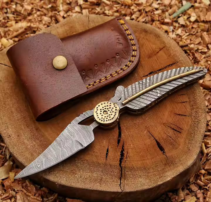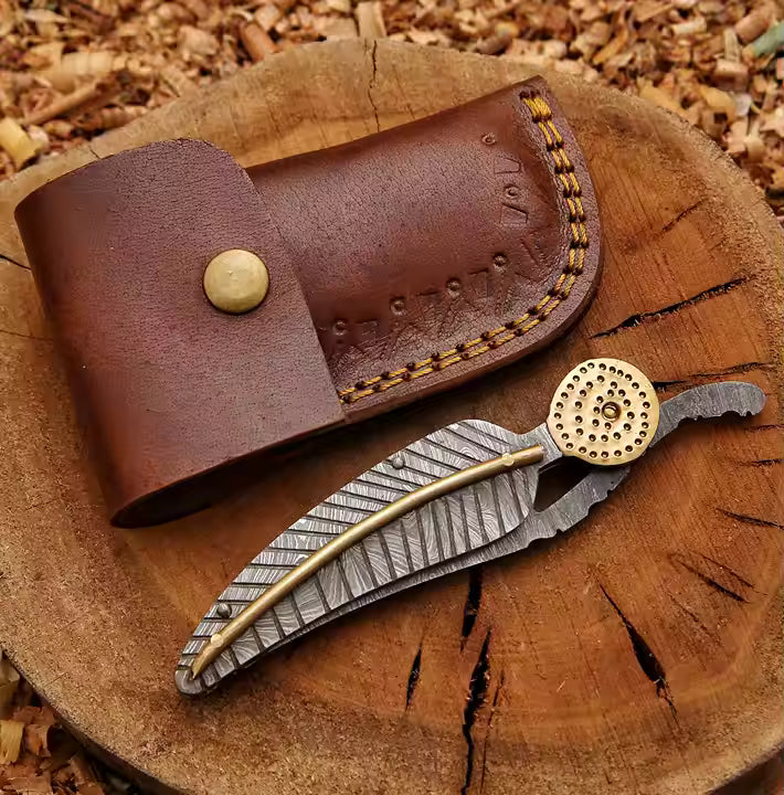 Hand-forged Damascus steel. Leaf-inspired precision. Adventure-ready style.